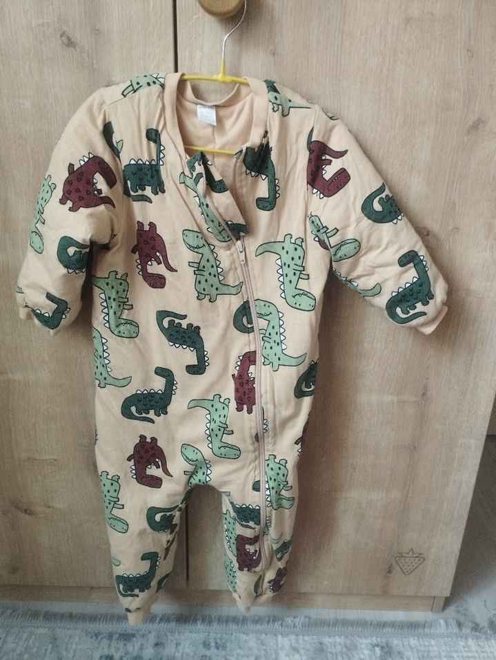 Renkli yılan desenli, uzun kollu, yakalı ve fermuarlı bebek erkek tulumu. Sıcak ve yumuşak kumaştan, sokak tarzı için uygun.