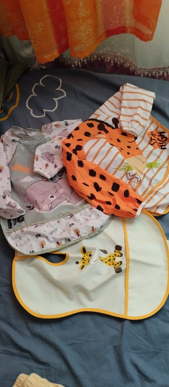 Çeşitli hayvan desenli, renkli ve yumuşak kumaştan yapılmış bebek önlükleri. sıfır ürün kullanılmamış hepsinin fiyatı