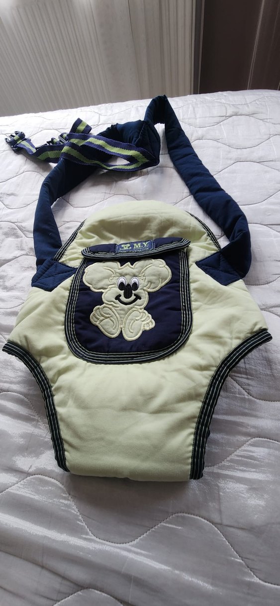 Renkli tasarıma sahip, yumuşak dolgulu ve ayarlanabilir askılı bebek taşıyıcı. Önünde sevimli nakışlı karakter bulunur.