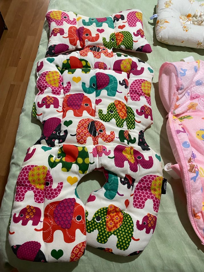 Renkli fil desenli, yumuşak dolgulu bebek uyku minderi.