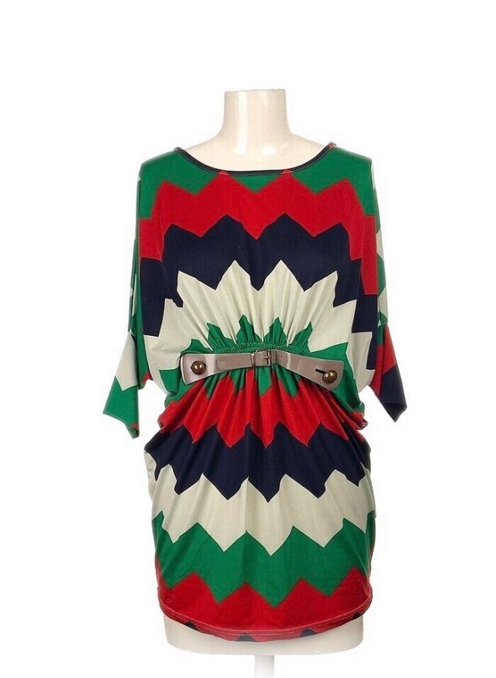 Renkli Desenli Bel Detaylı Tunik