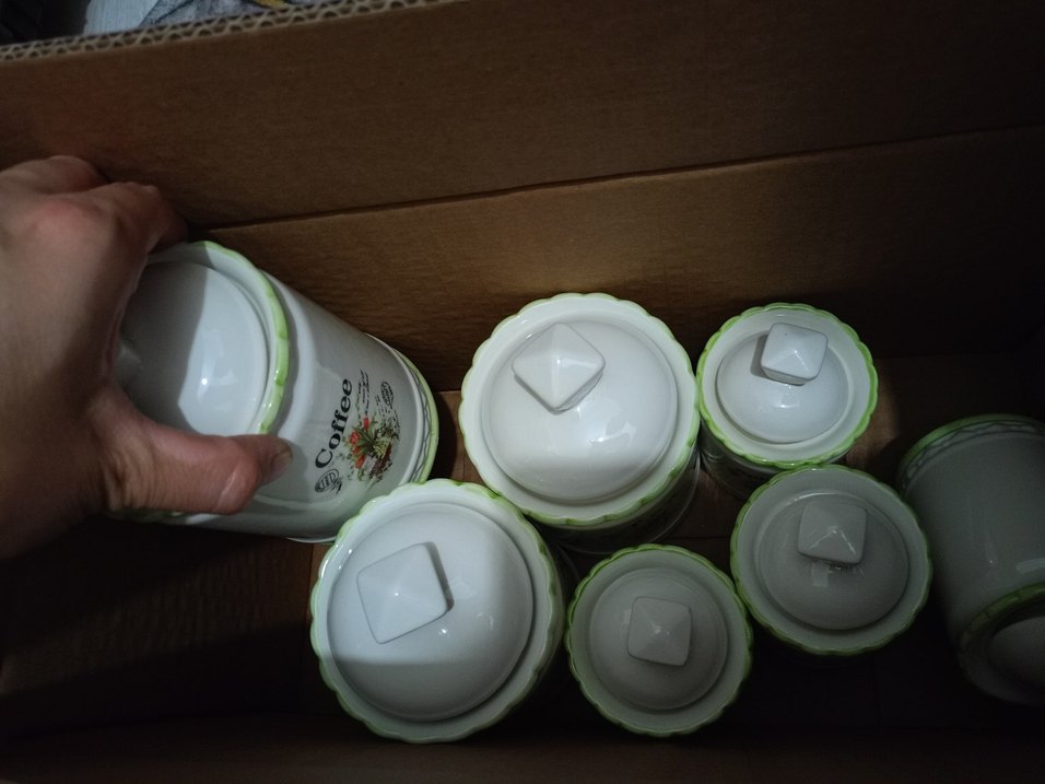 Renkli çiçek desenli beyaz mutfak saklama kavanozları, kahve ve diğer malzemeler için kapaklı set. ☕