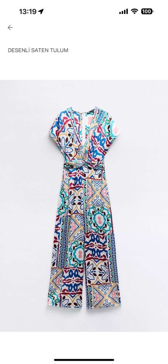 Zara Xs beden Renkli desenlere sahip, kısa kollu, V yakalı , bohem tarzda uzun kesim tulum. Hiç kullanılmamıştır.