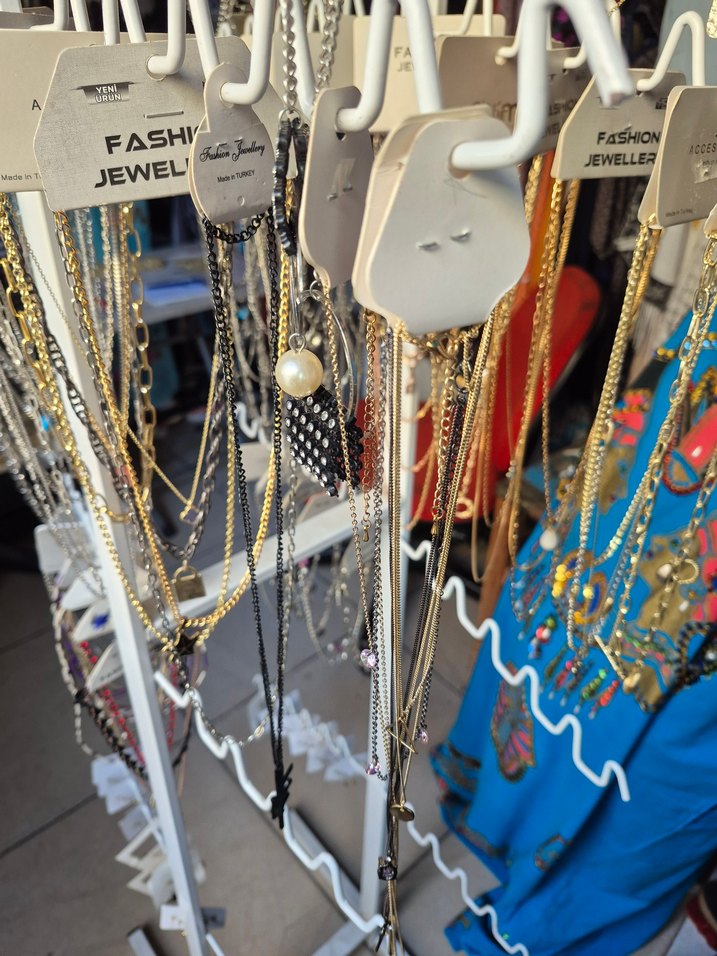 Renkli ve desenli detaylara sahip, altın renkli bohem zincir kolye, midi uzunlukta ve günlük kullanım için uygundur. ✨