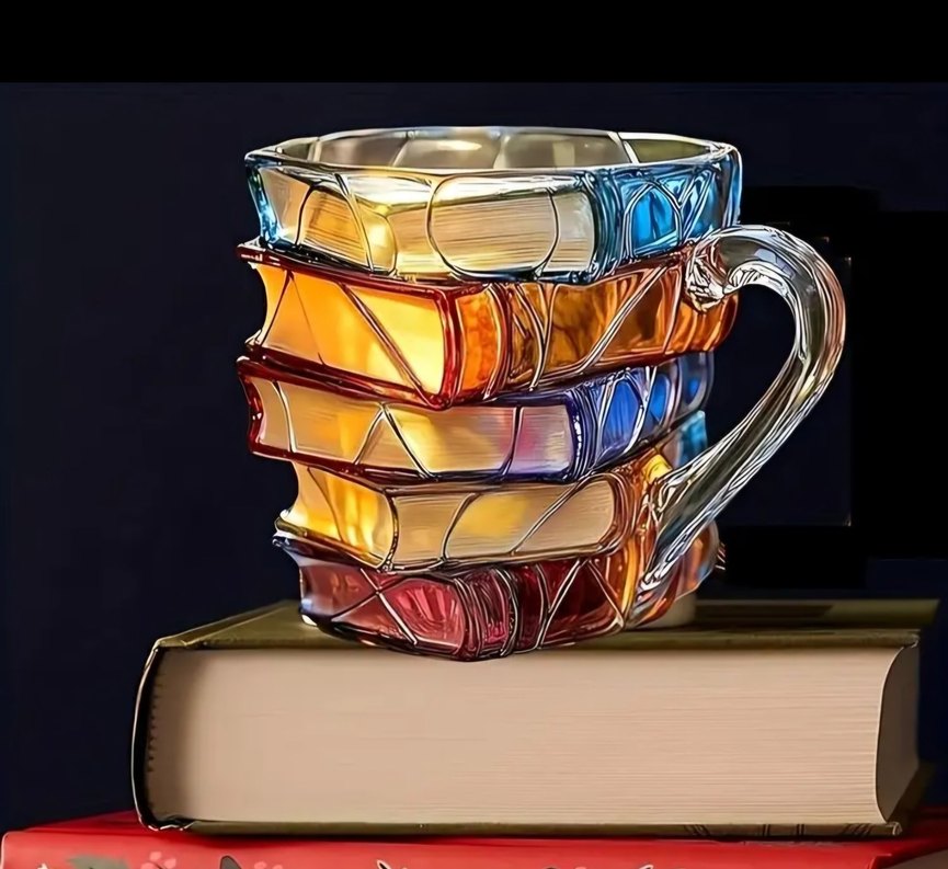 Renkli Desenli Cam Kupa kitap fincan