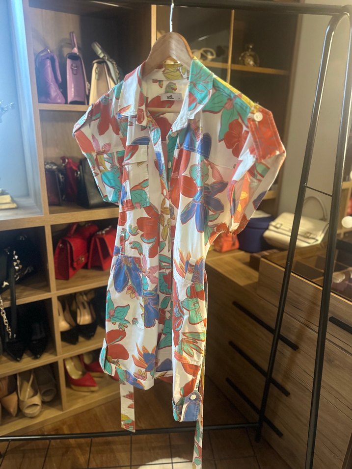 Renkli Desenli çiçekli Midi Tulum