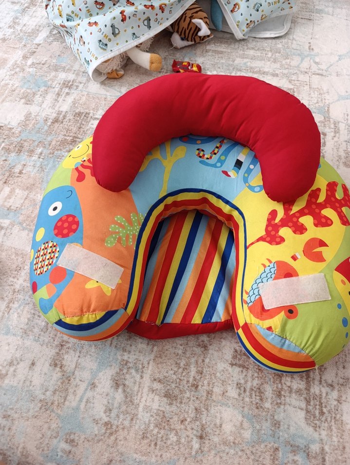 Renkli desenli, yumuşak kumaşlı emzirme ve hamile yastığıdır, hamilelik ve emzirme sırasında konfor sağlar.