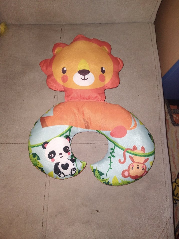 Renkli ve desenli emzirme yastığı, sevimli aslan figürü ve panda ile maymun desenleri içerir. Yumuşak ve destekleyici yapıda. Defosu vardır resimlerde belirttim.