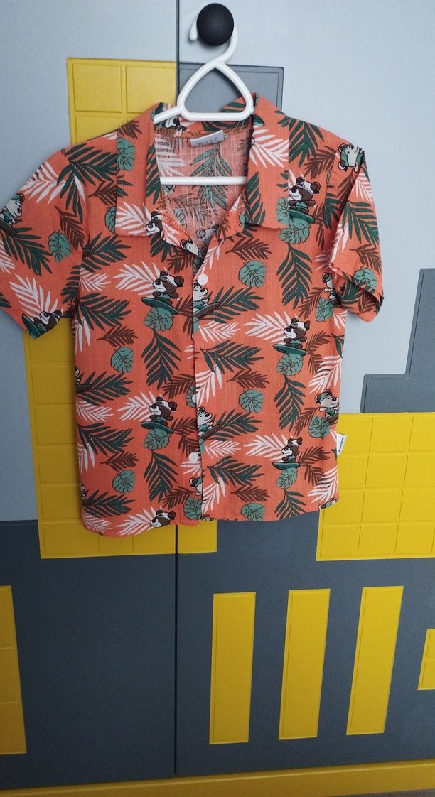 Renkli baskılı, kısa kollu ve düğmeli erkek çocuk gömleği. V yaka ve rahat kesimle sokak stiline uygun.