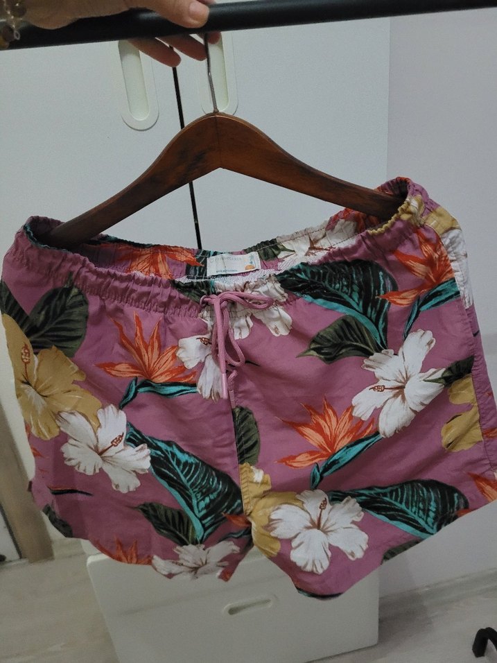 Yurtdışından.Renkli,bohem bağlama desenli, bol kesim mavi deniz şortu, plaj için uygun. herhangi bir defo Sökük yırtık yoktur M L bedene uyar.İçindeki fileyi kesmiştim