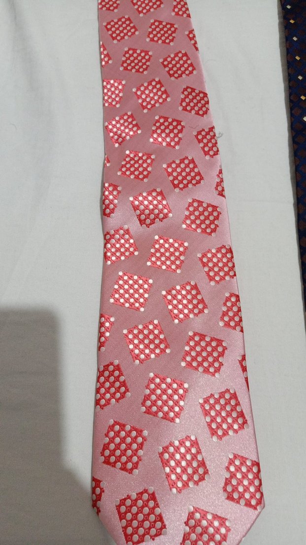 Bu erkek kravatı, pembe zemin üzerinde beyaz noktalı kırmızı kare desenlerine sahip, klasik iş stiline uygun renkli bir tasarımdır. Sıfır etiketli Pembe MCA Business Kravatı.