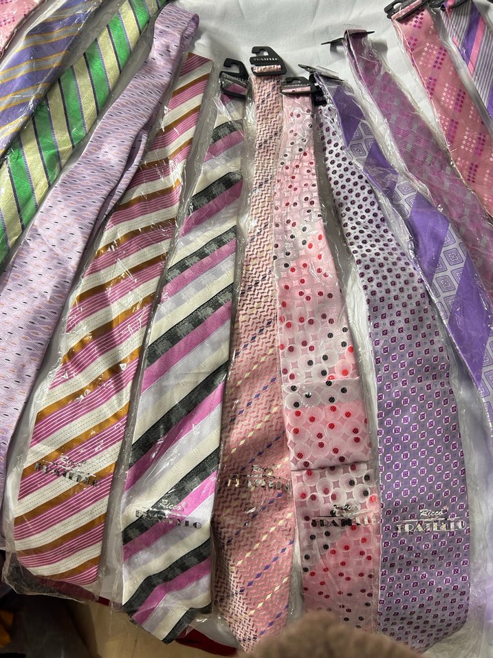Çeşitli çizgili ve desenli renkli erkek kravatları, cesur iş tarzları için uygun.