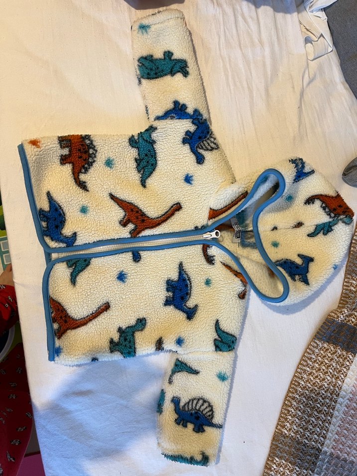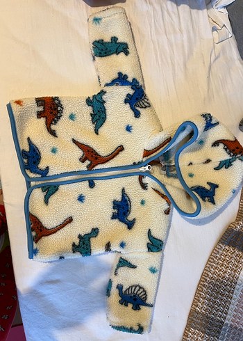 Aşırı kullanışlı kalın peluş tarzı erkek bebek mont. Tertemiz yeni çok az sayılımgiyildi. Biz çok severek kullandık gerçekten iyiki almışım dedim. Alana hayırlı olsun. Herhangi bir defo vs. Yok. Renkli, sevimli dinozor desenli, fermuarlı ve yumuşak dokulu bebek mont. Sokak stili için uygundur.
