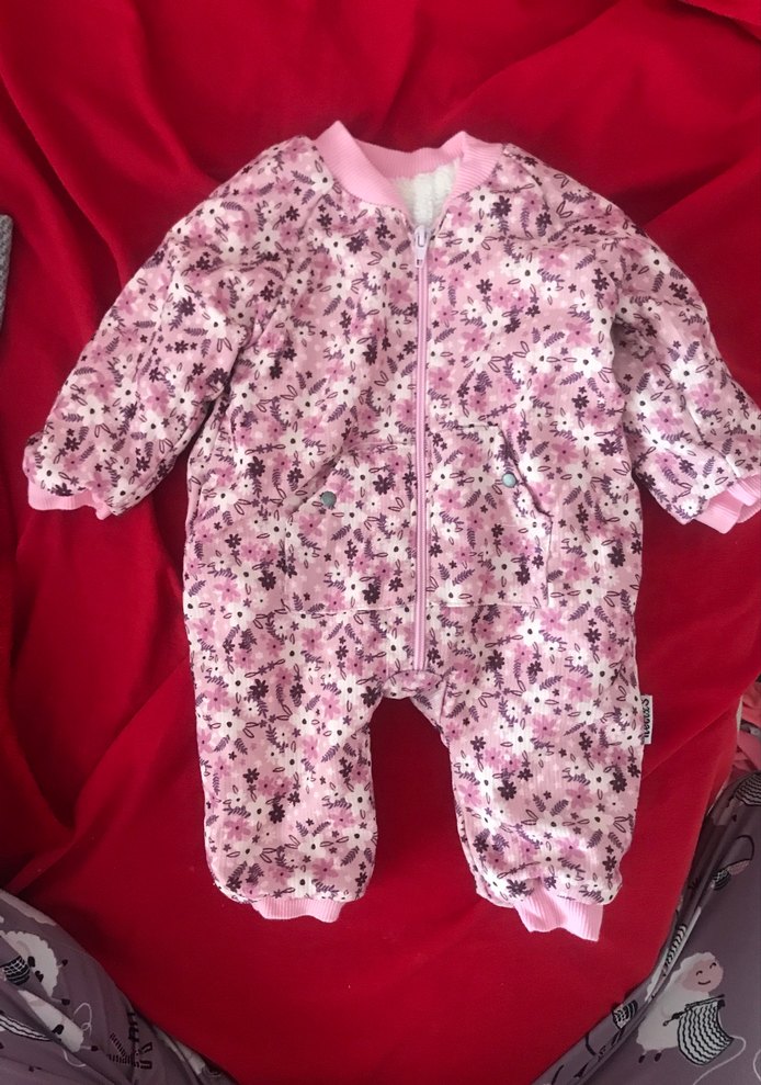 Renkli, fermuarlı ve yakası kesimli bebek tulumu. Pembe tonlarında çiçekli batik desenlidir, sıcak ve rahat tutar. ❄️ 6 9 ay bebek mont