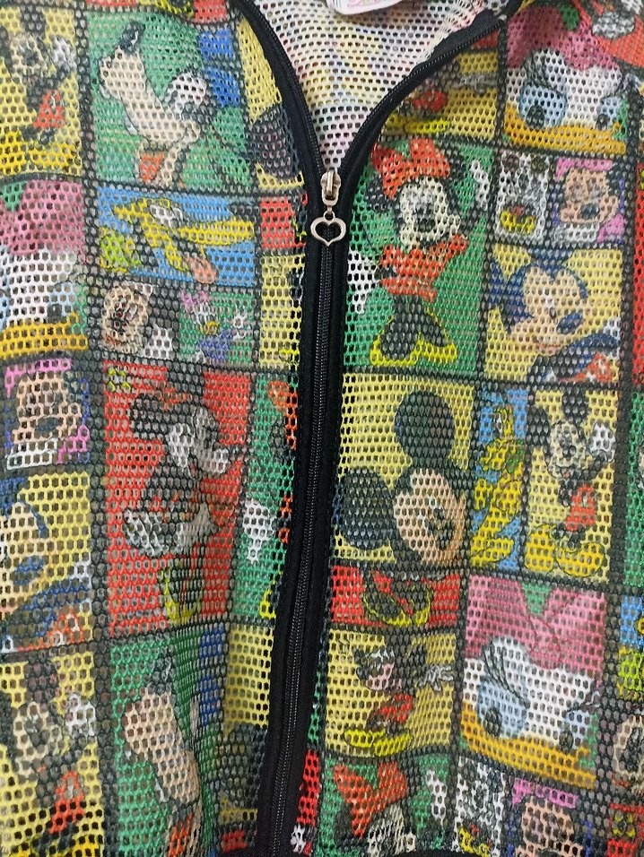 Renkli desenli file ceket, kalp figürlü fermuar detayına sahip. Canlı ve çizgi film karakterlerinden ilham alan desenlerle dolu.