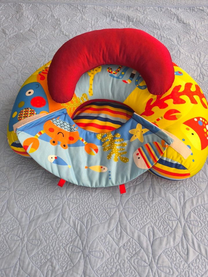 Renkli desenli ve yumuşak kırmızı üst kısmı olan bu hamile ve emzirme yastığı, anne ve bebek için rahat destek sağlar. Welgro marka bebekler Yeni oturmaya başladığında çok kullanışlı