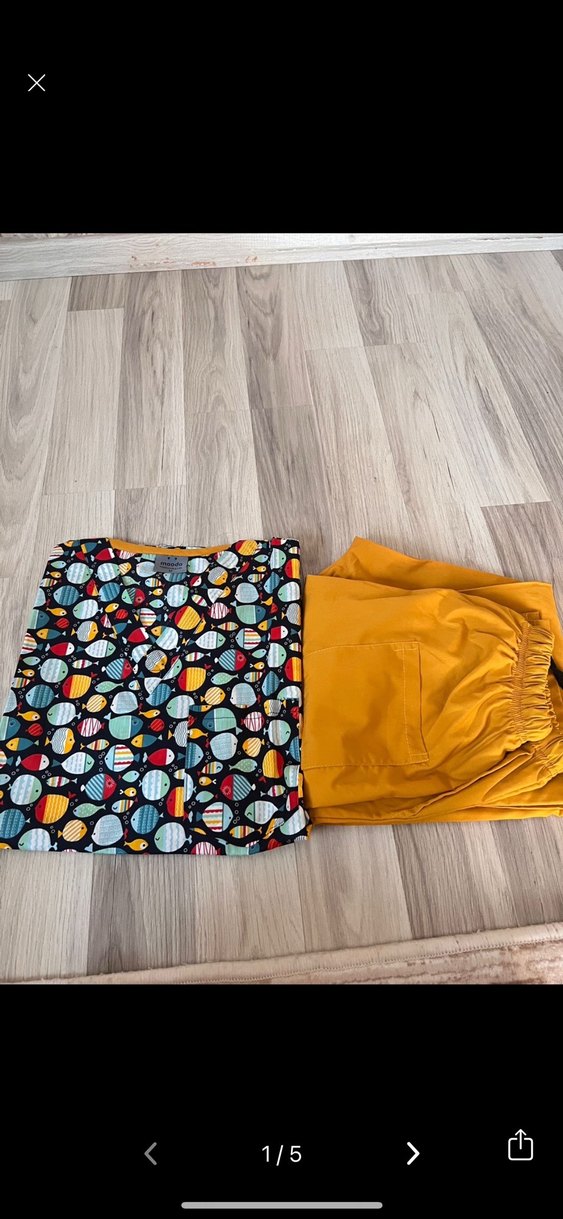 Renkli desenli, kısa kollu hastane forması m beden yemi hiç giyilmedi pantolon boy 110 cm