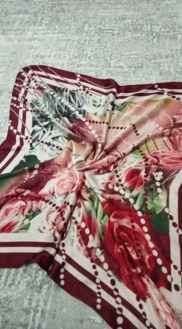 İpek kumaştan yapılmış, çiçek ve noktalı desenlere sahip renkli, ipek Eşarp