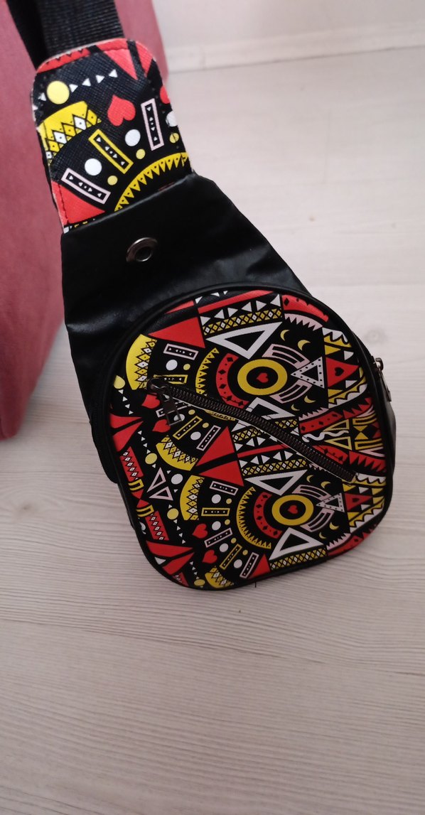 Renkli desenlere sahip, tokalı ve sentetik kumaştan yapılmış çapraz çanta, sokak stili ve günlük kullanım için uygundur.