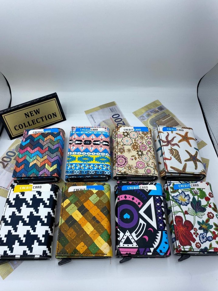 Renkli baskılı desenlere sahip kadın cüzdanı, sokak stili ve karşı kültür havası taşıyor. "NEW COLLECTION" yazısı bulunur, cesur ve modaya uygun bir görünüme sahiptir.