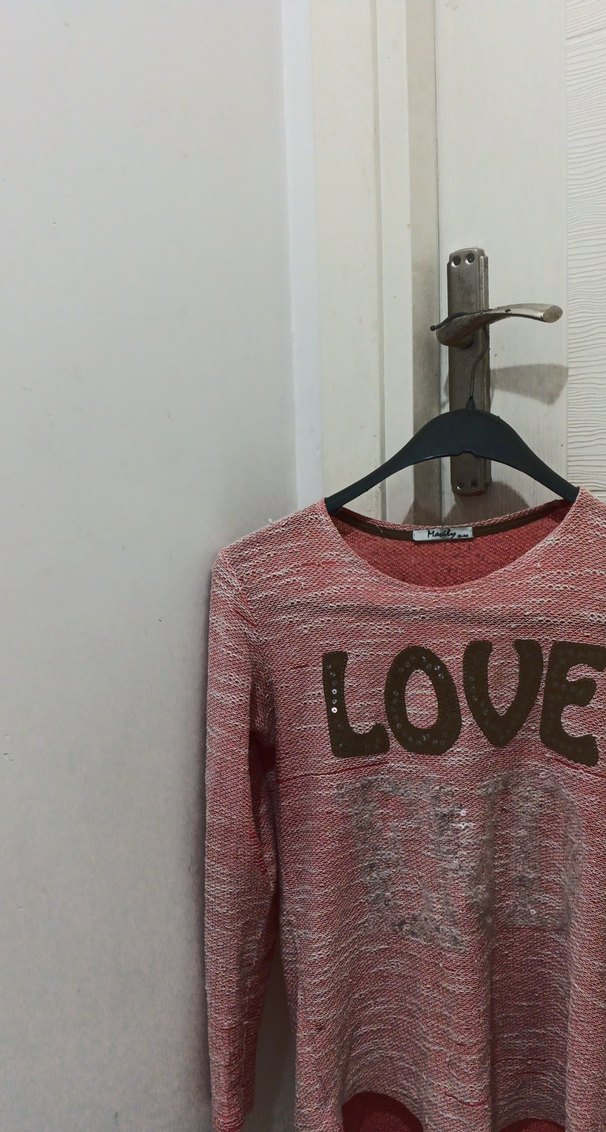 Kadınlar için uzun kollu, yuvarlak yakalı, yumuşak triko kumaştan yapılmış bol kesim kazak. Renkli ve "LOVE" baskılı, günlük rahat kullanım için uygundur. ❤️