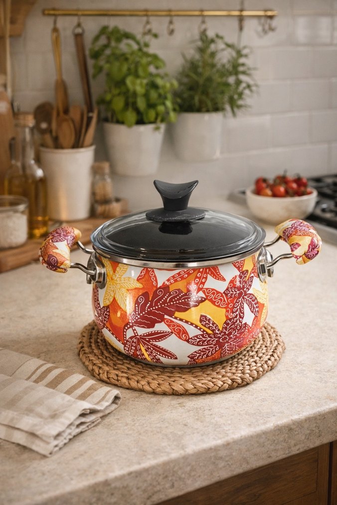 Renkli Desenli Kapaklı Derin Tencere 19 cm