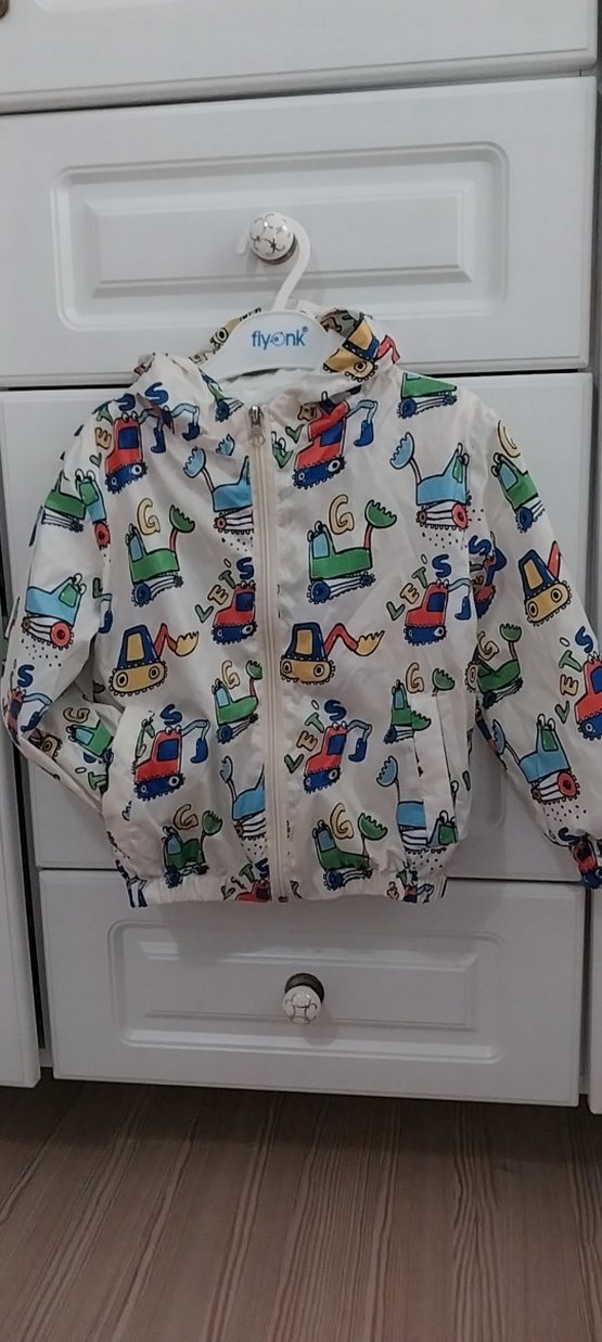 Renkli Desenli Kapüşonlu Erkek Çocuk Yağmurluk