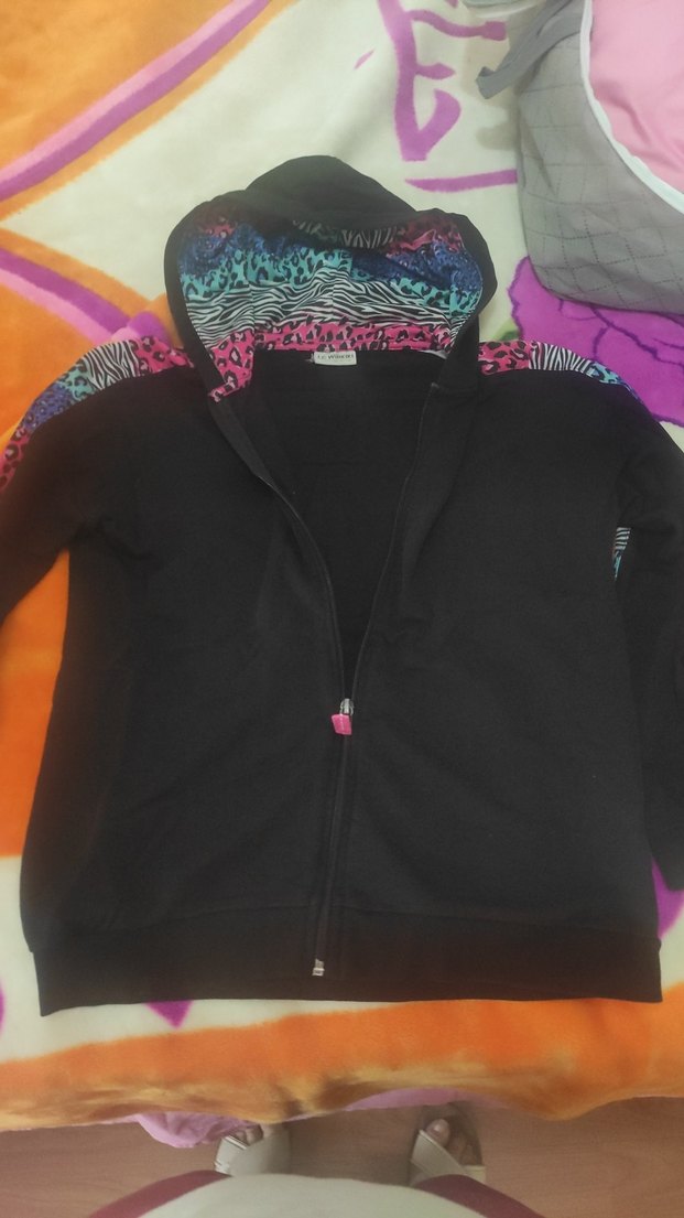 Fermuarlı ve kapüşonlu bu kız çocuk ceketi, renkli desenli iç astarıyla rahat ve sokak modasına uygun bir tasarıma sahiptir.