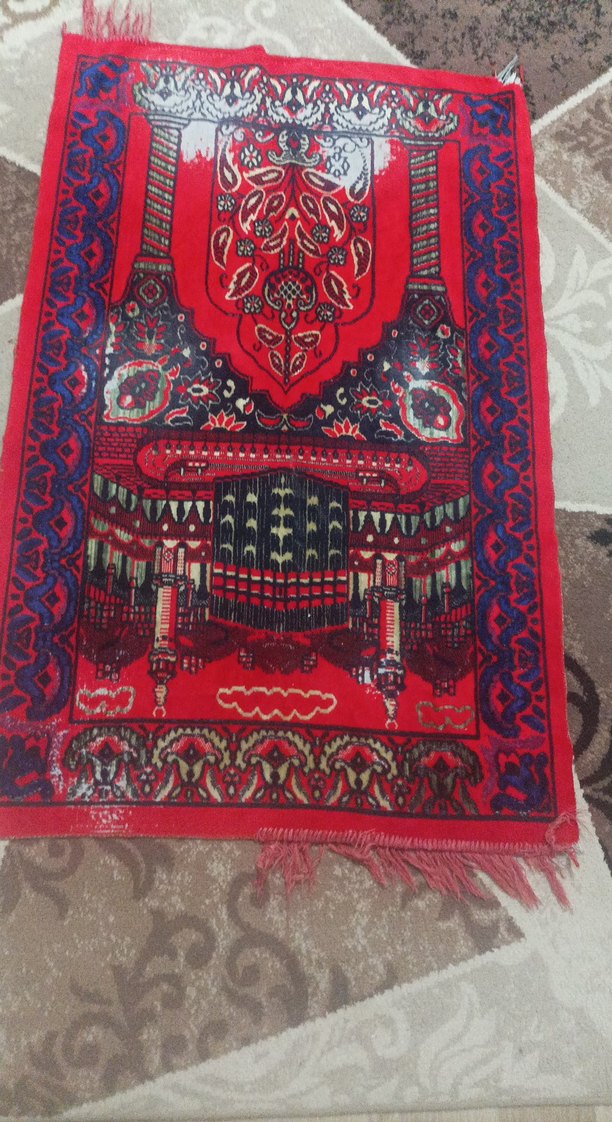 Detaylı desenlere sahip, renkli ve kırmızı geleneksel tarzda halı, mekâna sıcaklık katar.