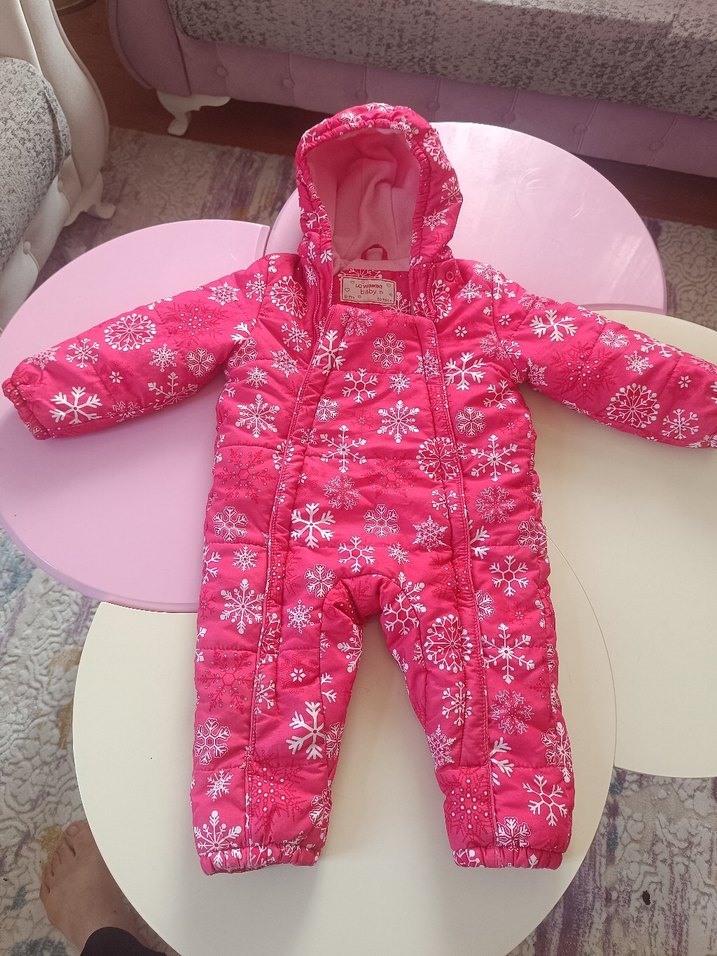 Renkli desenlere sahip pembe kız bebek kar tulumu, yaka kısmı notched lapel ve kolay giydirme için fermuarlı tasarıma sahiptir. ❄️