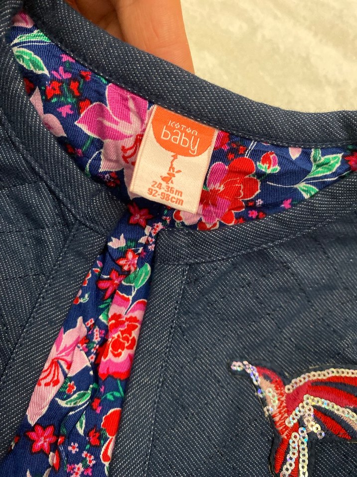 Renkli desenli iç astarlı, fermuarlı, uzun kollu, notched lapel yakalı, bohem tarzda kız çocuk fitted denim bolero.
