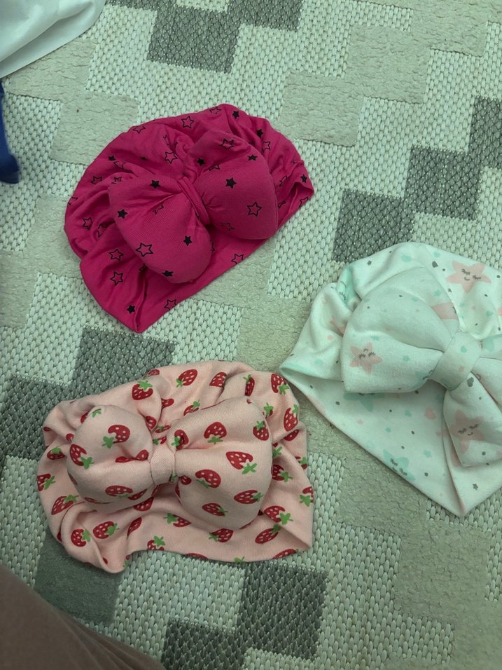 Yumuşak sentetik kumaştan, çeşitli desenlerde ve fiyonk detaylı renkli kız çocuk bereleri. Bohem tarzı için uygun.
