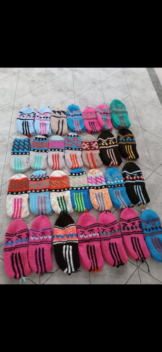 Renkli Desenli Kız Çocuk Örgü Sıcak Terlik