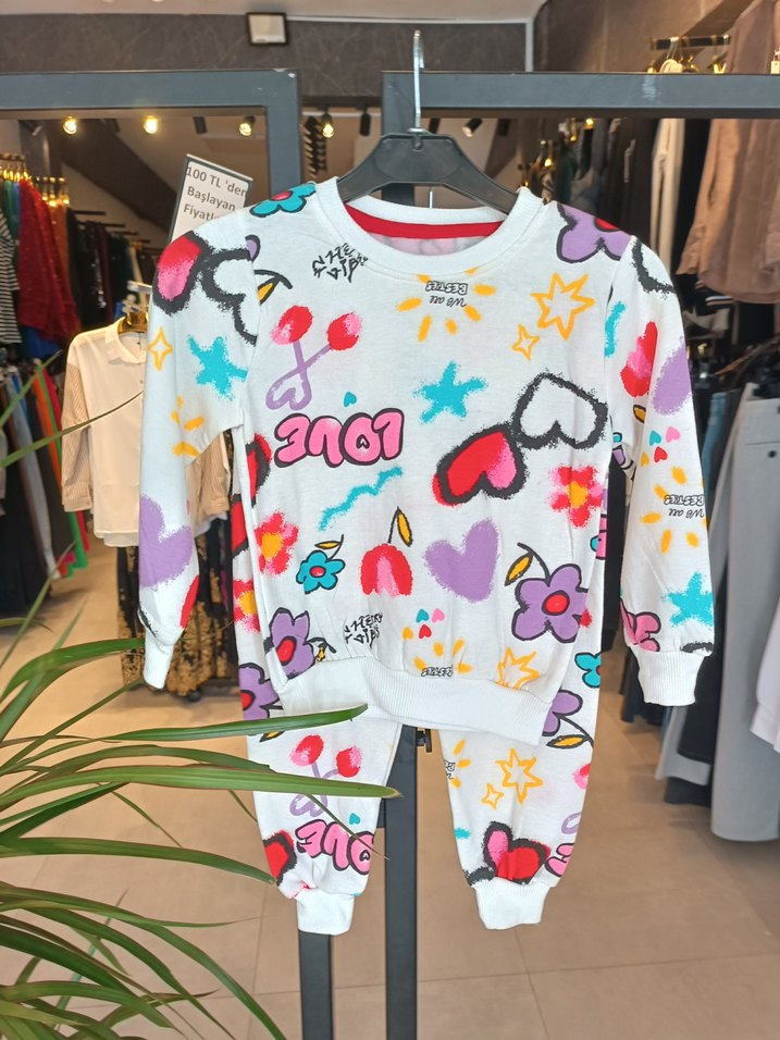 Renkli desenli, uzun kollu, bol kesim kız sweatshirtü. Pamuklu, örgü dokulu kumaştan yapılmıştır ve modern, rahat bir görünüm sunar. içi Polarlı rahat iki beden büyük alınız. son 5 yaş 8-9-10 ve 11 yaş mevcut