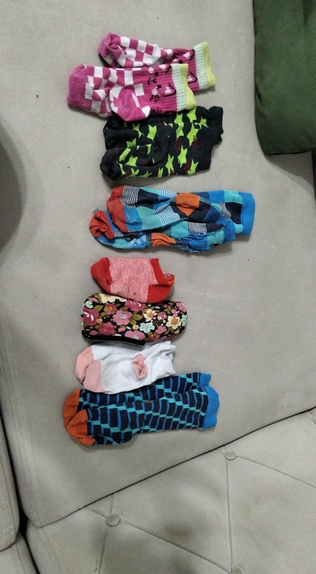 Yumuşak sentetik kumaştan yapılmış, her biri farklı renkli desenlere sahip kız çorapları.