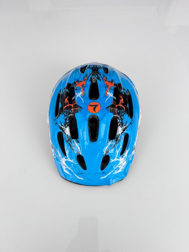 Renkli desenlere sahip mavi biker kask, plastik malzemeden üretilmiş ve tokalıdır. Güvenlik ve şıklığı bir arada sunar. ️