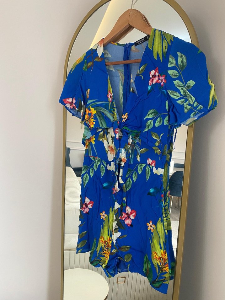 Renkli Desenli Mavi Kadın Kısa Tulum