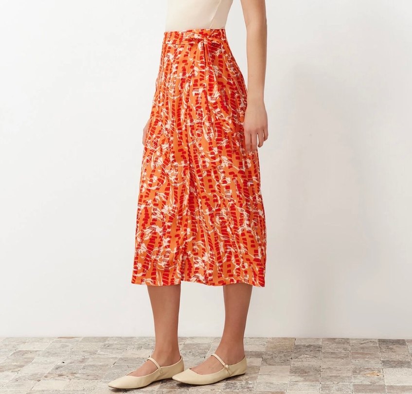 Renkli Desenli Midi Kadın Etek