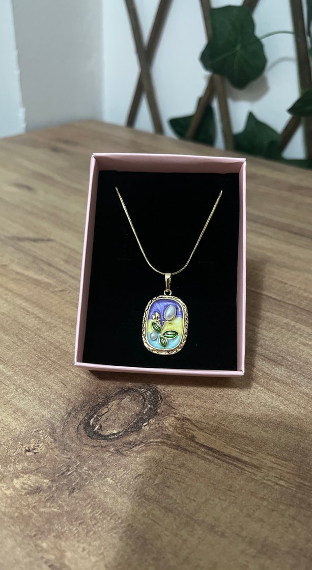 Renkli Desenli Mini Altın Çelik Kolye