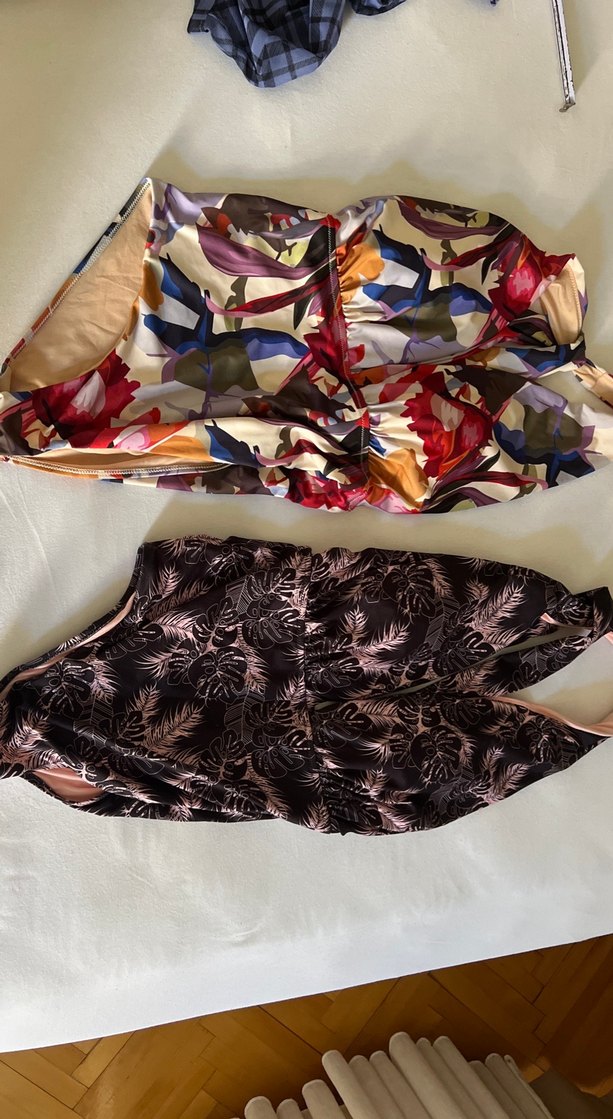 Kadın mayo, kısa mini boyda, bol kesim ve askılıdır. Canlı çok renkli deseni ve drapeli tasarımıyla bohem tarzı sunar. Göğüs kısmı dekolteli az giyildi 2 mayo birden satılıktır
