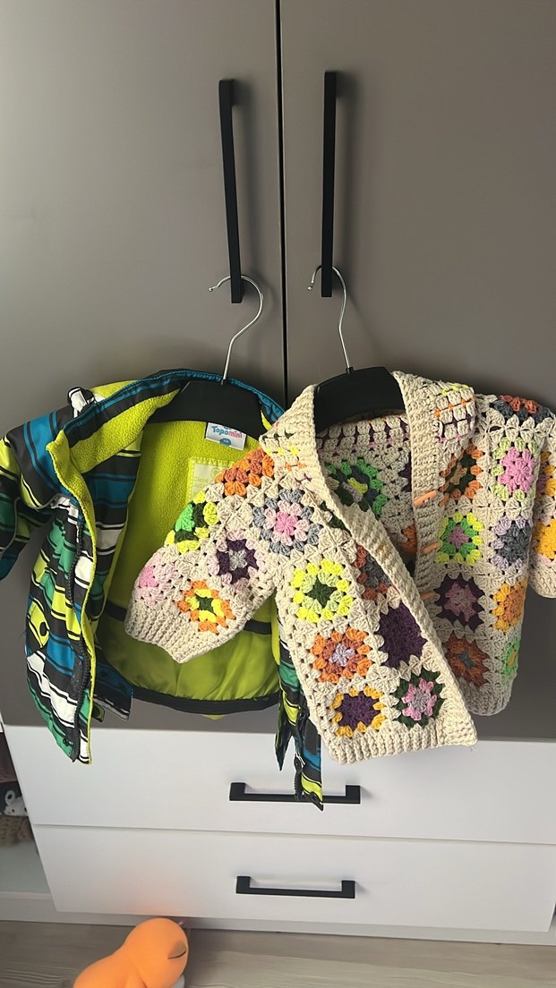 Renkli Desenli motifli Örgü Kız bebek hırka