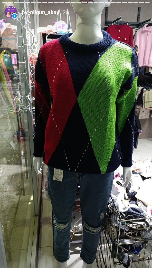 Renkli Desenli Örgü Kadın Kazak