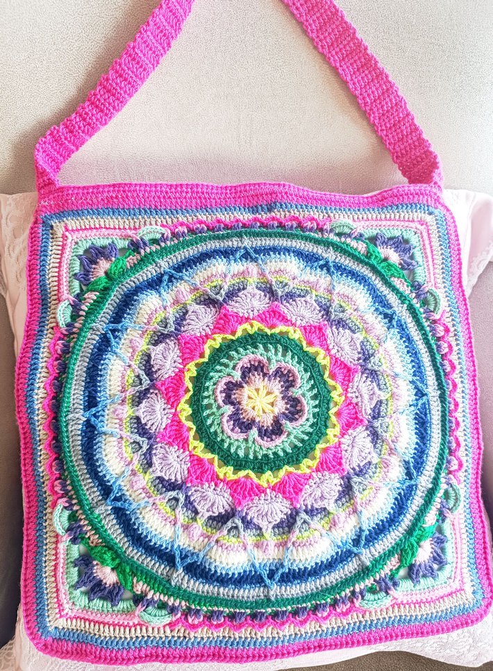 Mandala desenli tığ işi örgü, içi astarlı, büyük çıtçıtlı kol çantası . İstediğiniz renklerde örülür.