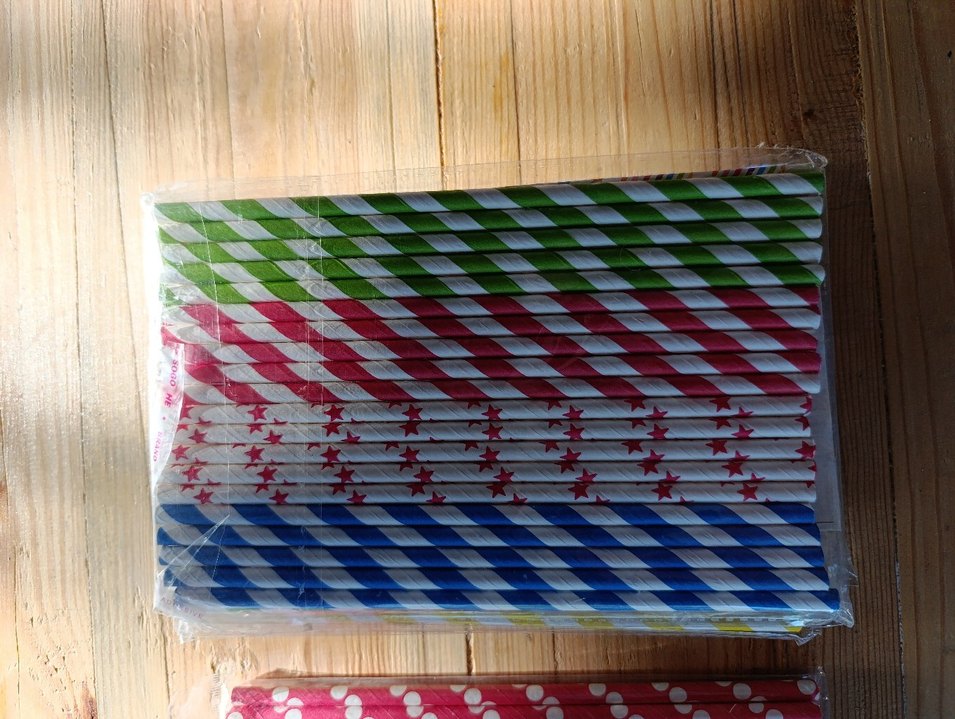 Çizgili ve yıldız desenli, renkli parti pipetleri, kutlamalar için uygun .