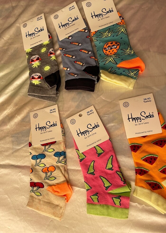 6 adet takım. Renkli desenli patik çorap. Desenleri muhteşem etiketli. Temiz. Sıfır