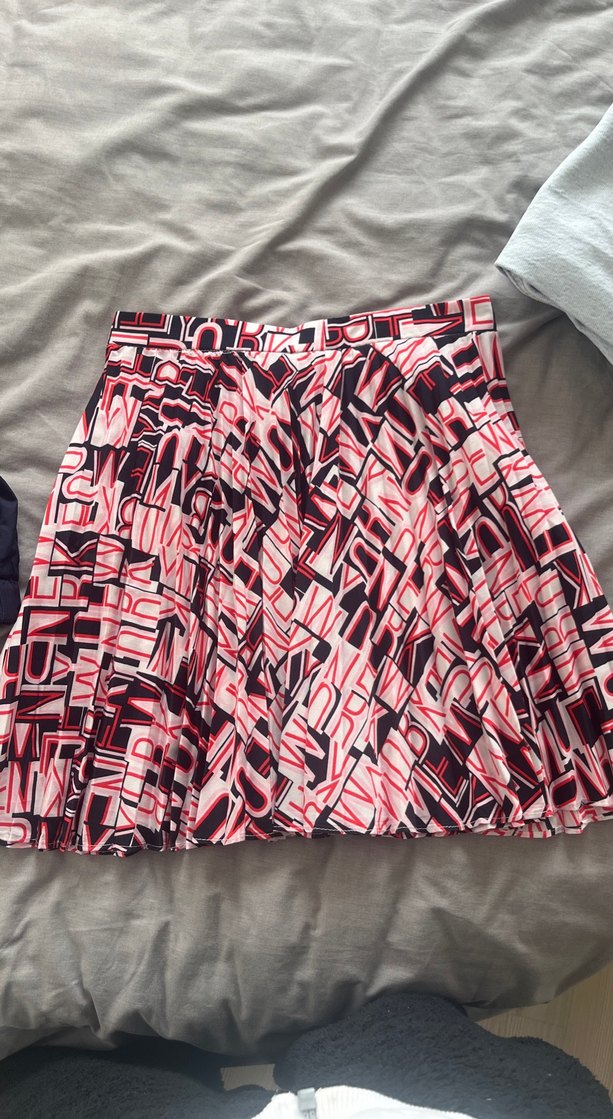 Renkli desenli, pilili ve bol kesim mini etek. Pürüzsüz sentetik kumaştan yapılmıştır. Sokak modası ve athleisure tarzına uygundur. Günlük kullanım için idealdir.