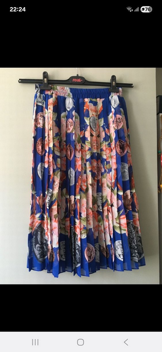 Renkli Desenli Piliseli midi Kadın Etek