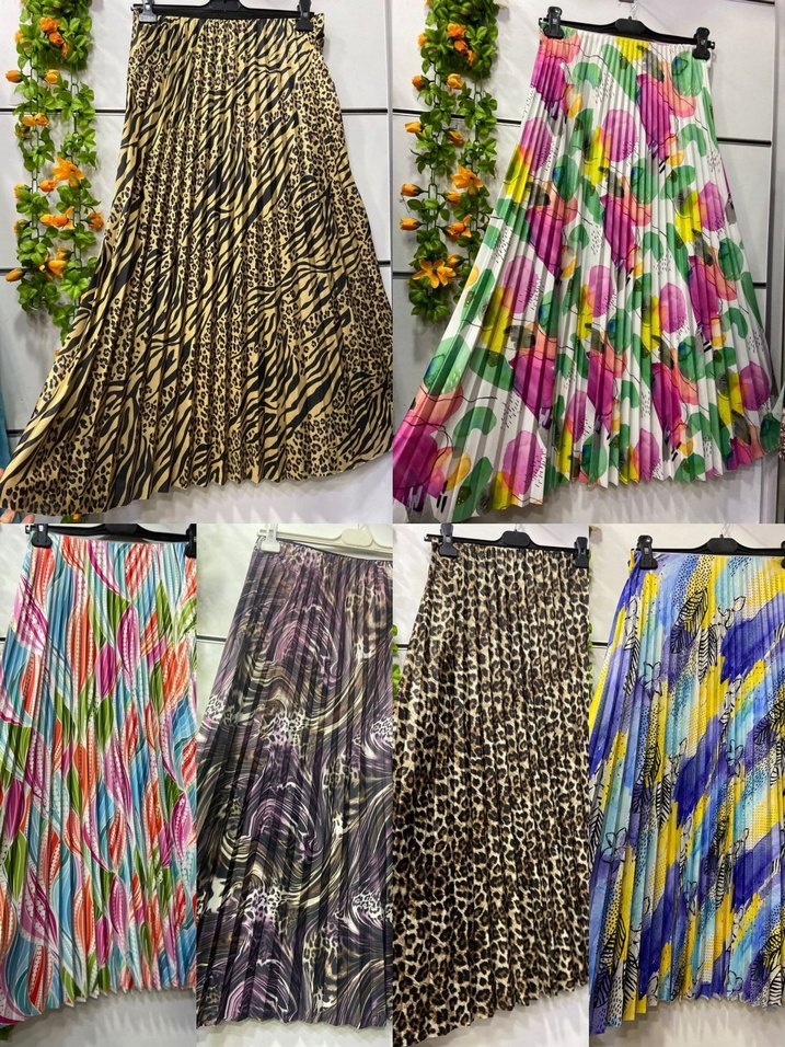 Renkli Desenli Piliseli Uzun Etek
