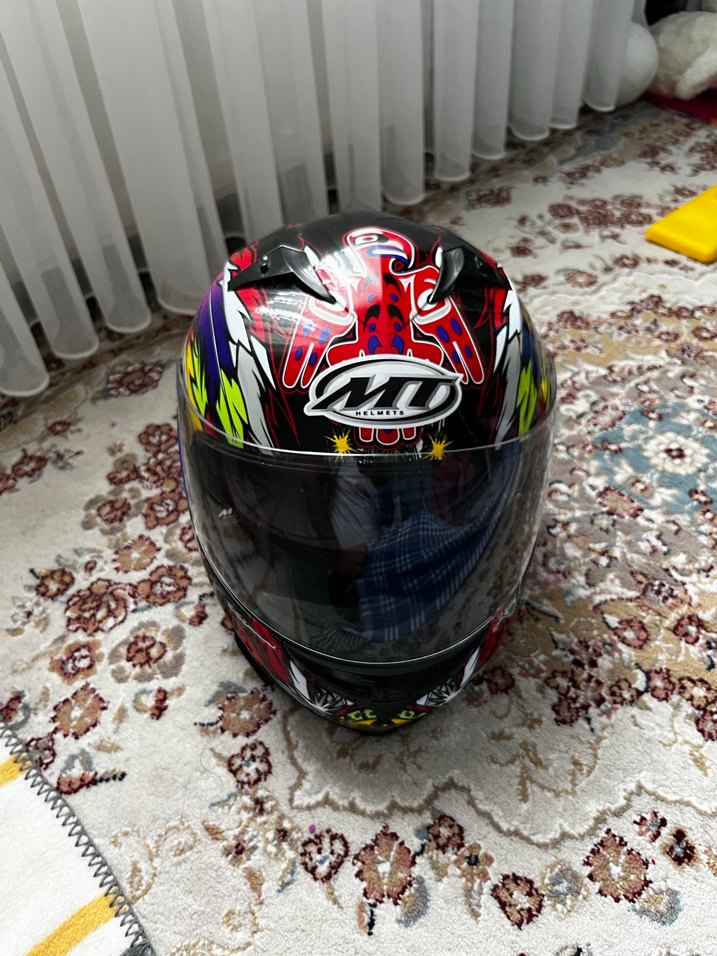 Renkli desenlere sahip seramik motosiklet kaskı, tokalı ve rock punk havasında sokak stilini yansıtıyor. ️