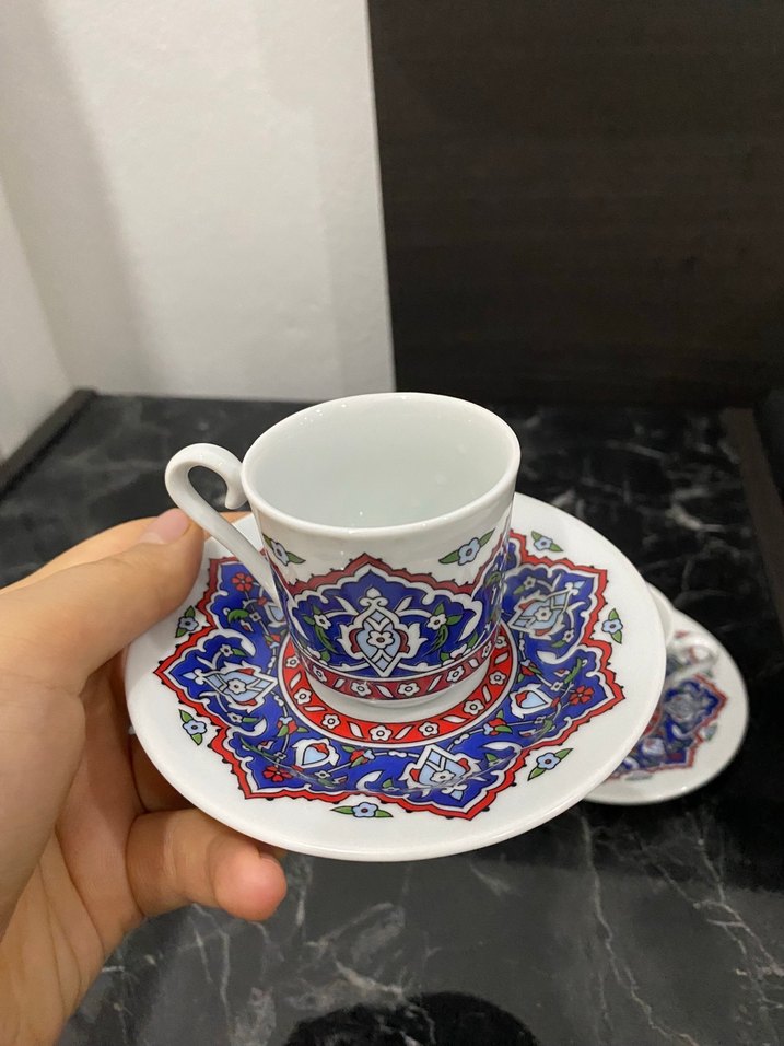 Renkli Desenli Türk Kahvesi Fincanı ve Tabağı